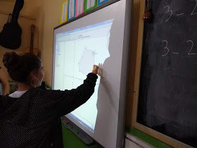 Los chicos de 1° A y B grado descubrieron una valiosa herramienta con la que cuenta la sala de informática del colegio: "La Pizarra Digital Interactiva". Todos expectantes esperaron su turno para poder escribir sobre la misma sus nombres, pero con un lápiz innovador, maravilloso y de última tecnología: "El dedo". Si! los chicos asombrados descubrieron el nuevo poder mágico que poseían: sus dedos escribían trazos de diferentes colores! Qué alegres estaban y ahora ellos quieren compartir con uds. sus hermosas producciones: